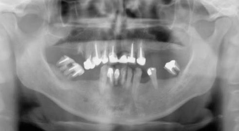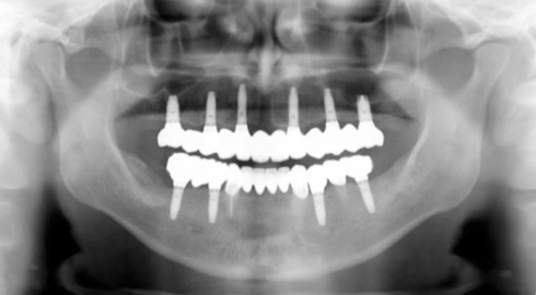 – le remplacement de plusieurs dents manquantes par un bridge sur implants. Cela évite l’appareil amovible.