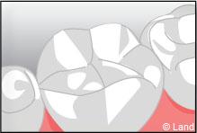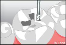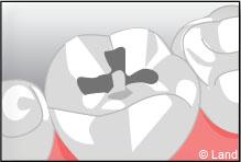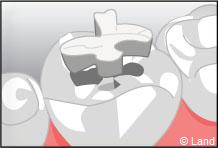 Un inlay reconstitue l’anatomie dentaire en comblant une cavité taillée dans la dent.