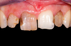 Exemple de couronne « tout céramique » sur incisive centrale.