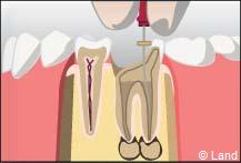 2° Il doit ensuite mettre en forme le canal afin de pouvoir réaliser l’obturation canalaire, le plus souvent à l’aide de gutta-percha chauffée ou froide permettant d’obtenir une étanchéité de bonne qualité afin de prévenir toute ré-infiltration par des bactéries et d’assurer sur le long terme la conservation d’une dent assainie. S’il y avait une lésion infectieuse au bout de la dent, celle-ci guérira, si elle n’est pas déjà trop avancée.
